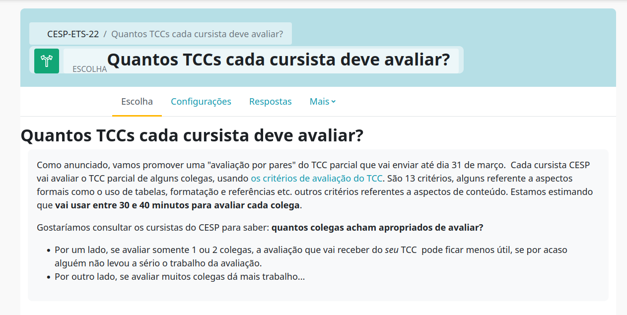 Perguntamos quantos TCCs cada um poderia avaliar.