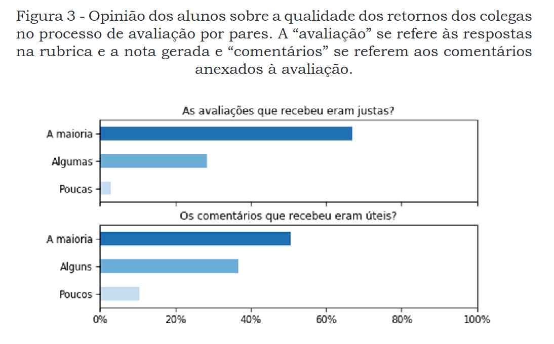 Eu gostei do processo de avaliação por pares, mas gostaria que houvesse também uma avaliação por professor, especialmente no caso da versão final do texto. (Estudante anônimo)